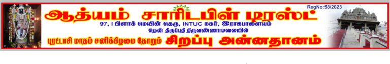 ஸ்ரீவில்லிபுத்தூர் திருவண்ணாமலை ஸ்ரீ ஸ்ரீனிவாச பெருமாள் கோவில் அடிவாரத்தில் புரட்டாசி விசேஷ நாளான சனிக்கிழமை தோறும் நமது டிரஸ்ட் சார்பாக நடைபெற்ற அன்னதானத்தில் …. முதல் சனிக்கிழமை 6000 பக்தர்களுக்கும், இரண்டாம் சனிக்கிழமை 9000 பக்தர்களுக்கும், மூன்றாம் சனிக்கிழமை 15000 பக்தர்களுக்கும் கடைசிவார 4 ஆம் சனிக்கிழமை 7000 பக்தர்களுக்கும் அன்னதானம் வழங்கி பக்தர்களின் பசியாற்றி…